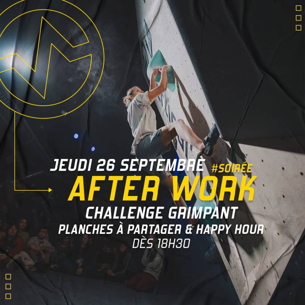 Profitez de l’After Work pour (re)découvrir notre partie escalade accessible à tous et grimper sur nos différents blocs tout au long de la soirée !